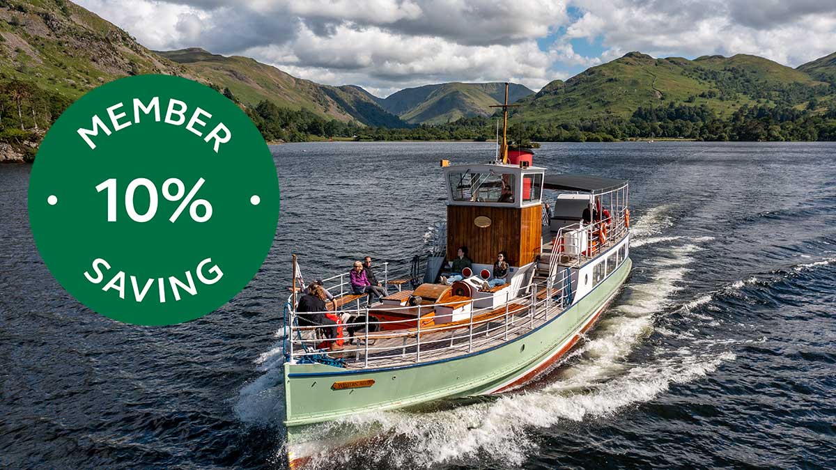 Enjoy a tranquil trip aboard a vintage boat across one of the most stunning bodies of water in the Lake District. Club members can enjoy a 10% discount on a return trip from Pooley Bridge to/from Glenridding with Ullswater Steamers. Prebooking is required and the discount isn’t valid on special event tickets or over bank holidays. After the boat trip, put on your walking shoes and explore sections of the Ullswater Way, the 20-mile footpath around the lake shore connecting all four piers by foot.