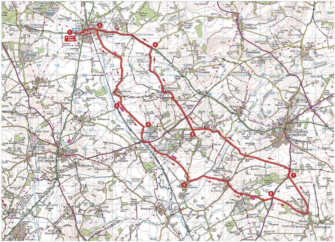 - Start: Moreton-in-Marsh Caravan Club Site, Bourton Road, Moreton-in-Marsh, Gloucestershire, GL56 0BT