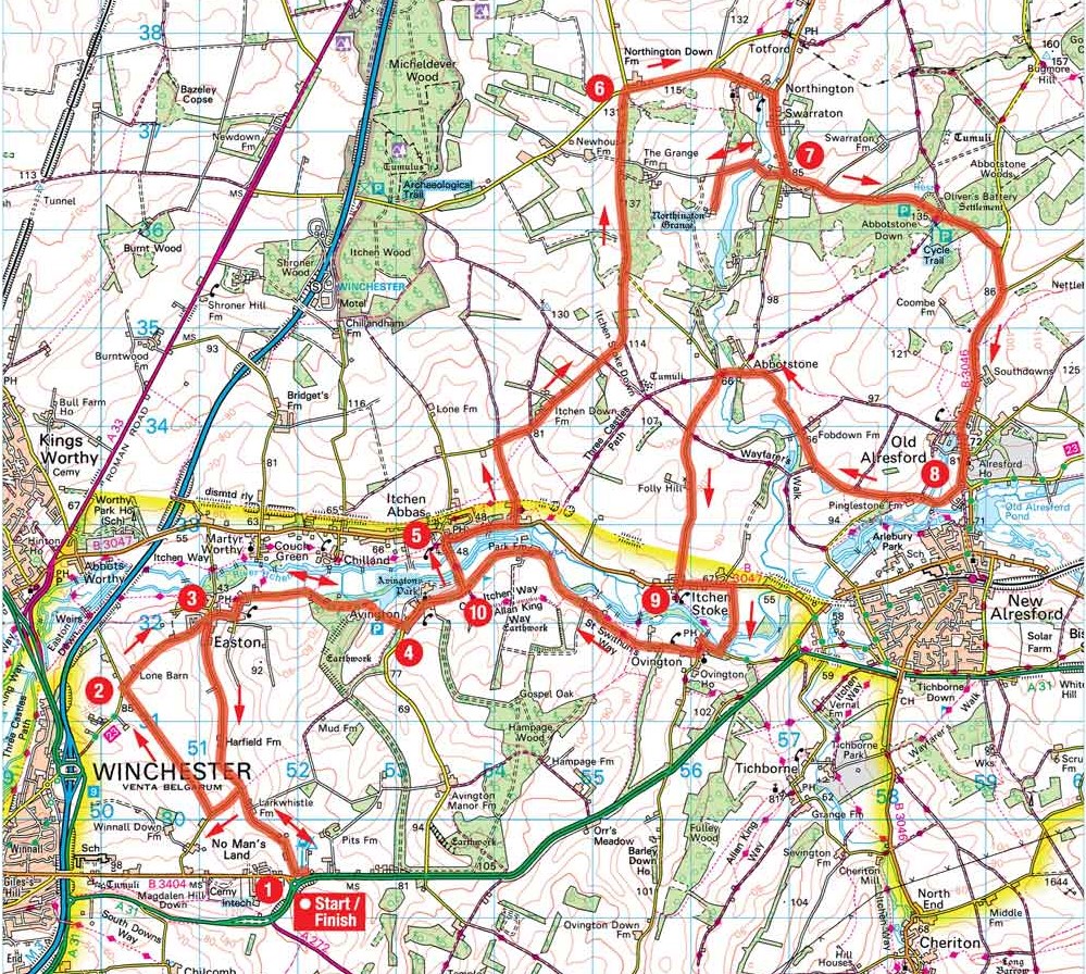 - Start/finish: Morn Hill Winchester Club campsite, Alresford Road, Winchester, Hampshire SO21 1HL.