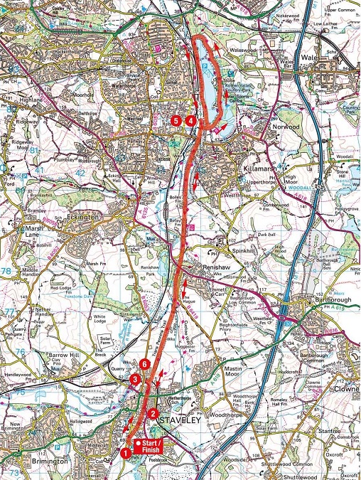 - Start/finish: Poolsbrook Country Park Club site, Pavilion Drive, Staveley, Chesterfield S43 3WL.