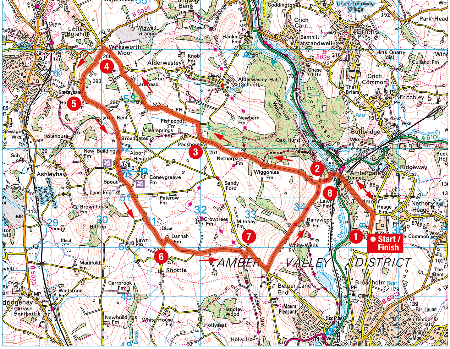 Towards the end of the route, the Bulls Head offers refreshment before tackling the impending climb back up to Ambergate, but however tempting the pub’s food, you wouldn’t want a full stomach before doing battle with the final ascent!