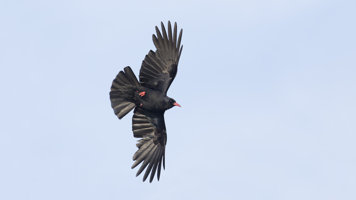 A chough in flight; note the splayed wing tips