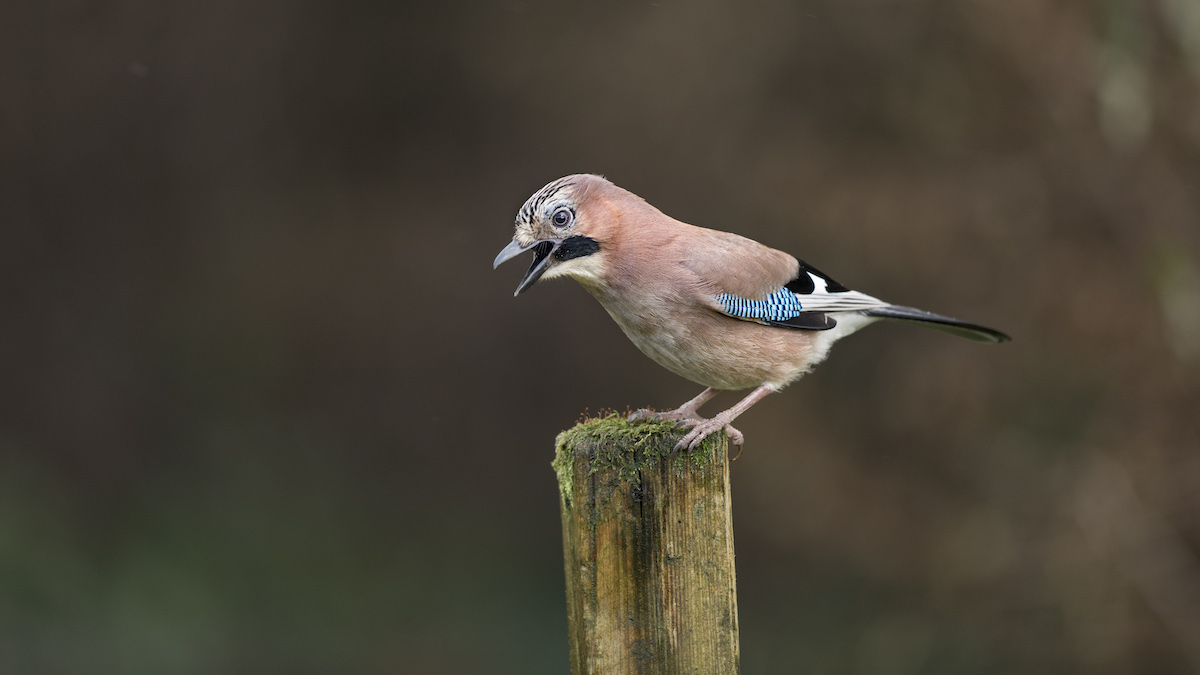 The jay’s plumage makes it one of our most striking birds. It is easily identified by its dusky pink body, black moustache and white rump, and striking flash of blue on its wings. Its loud screeching call has earned it a variety of local names, including ‘devil scritch’.