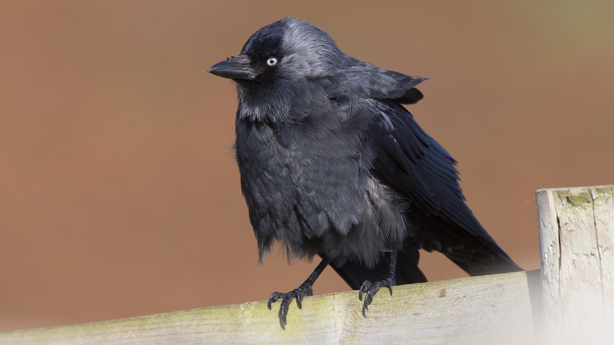 The jackdaw has a pale iris and black face