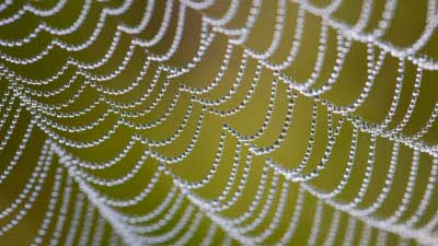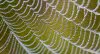 A spider’s web hangs under the weight of a necklace of dew drops