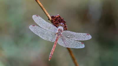 A common darter in an autumnal dew
