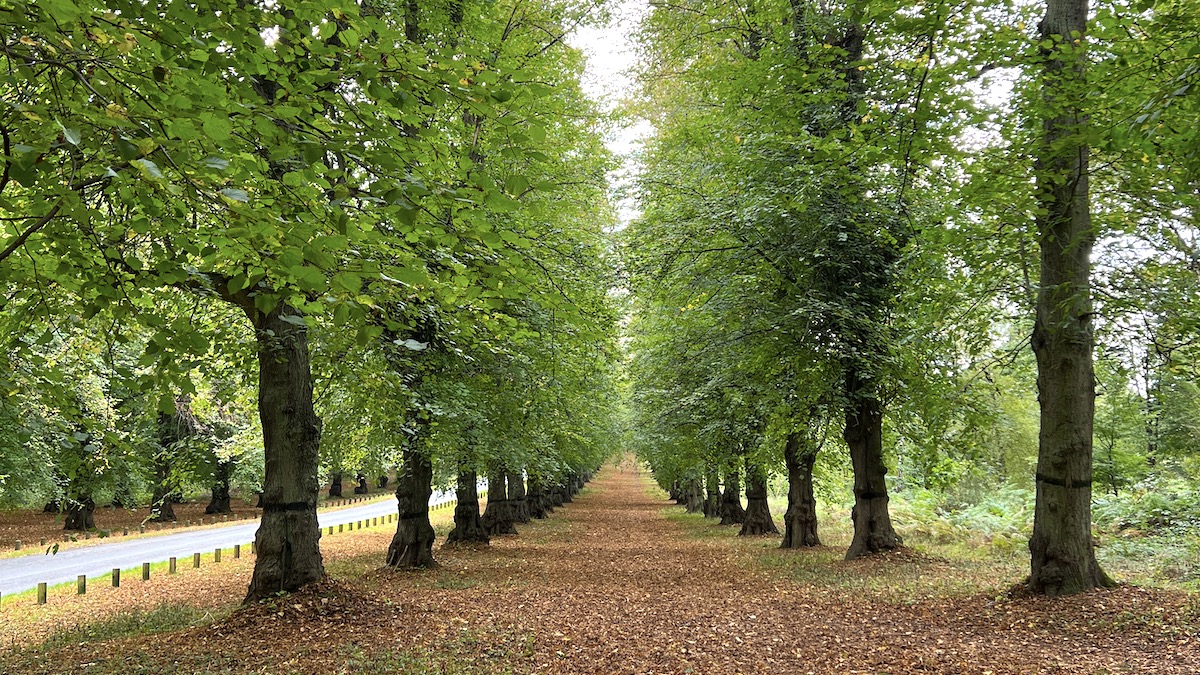 6. 8.4km – Continue for 600m through gates to meet a lane and turn left to walk along the avenue of lime trees to reach the entrance to the Club campsite after another 500m.