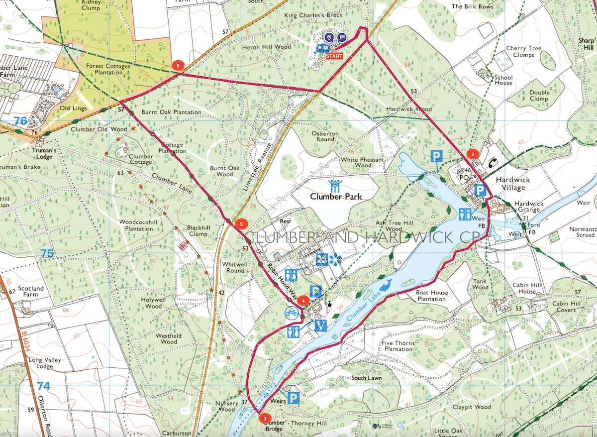 Our route starts at Clumber Park Club Campsite, which is open all year, and explores all these treasures in a relaxed 10km ramble through the woods, around the lake and along a section of the long-distance Robin Hood Way.