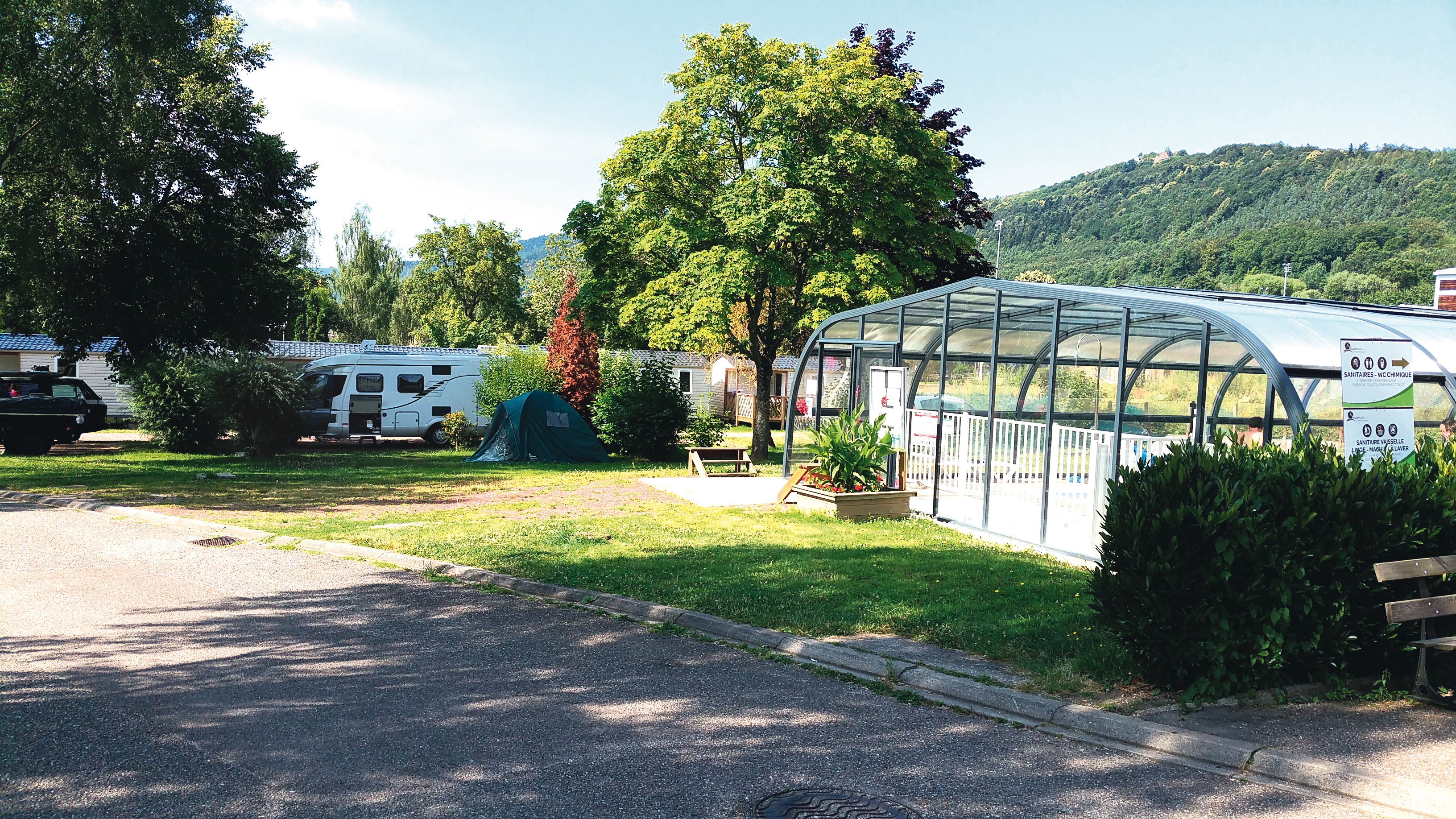 A superb campsite offering great facilities including a covered pool and bar/snackbar. Food vans regularly visit the site – when I was there, there was a man with a crêpe van, a lady selling homemade paella and a local cheesemonger. I made two regional dishes on my visit – coq au riesling and tarte flambée.