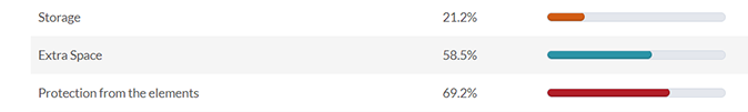 Porch awnings and full awnings are equally popular, followed by sun canopies. Although the vast majority of you have an awning of one size or another, 12% of the people who responded have decided not to have one. Some of the reasons were: