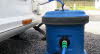 Alternatively, you can use a universal mains water adaptor kit. A ball valve fits into the side of the fresh water container which, in turn, is connected to a food-grade reinforced hose that joins to the tap. This set-up will repeatedly fill the fresh water container to approximately half way – the ball valve will stop the water from overflowing (it’s similar to the workings in a toilet cistern). The water pump is then connected to the fresh water container in the usual way.