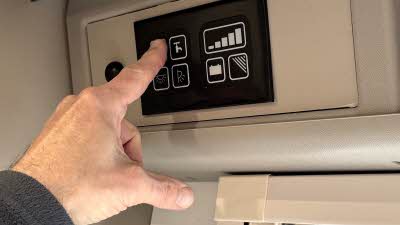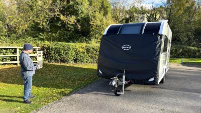 The next step was to unhitch the towcar and fine-tune the caravan’s position within the campsite’s markers, making sure the wheel lock lined up correctly and that the caravan was level. A motorised mover (a device fitted to the caravan chassis that allows the user to manoeuvre the caravan using a remote control) made the job fairly straightforward. Luckily, this site is relatively flat, so only a small front-to-back adjustment was needed, easily done by adjusting the jockey wheel. (If you want to find out more about levelling look out for an upcoming article.)