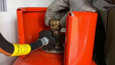 Now turn on the gas supply. On a Calor cylinder, this is done by rotating the nozzle anti-clockwise.