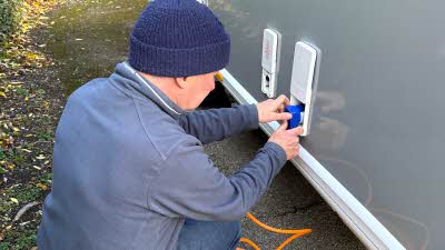 In terms of connecting to the site services, I like to start with the electric hook-up so that the fridge can get to work straight away. Always connect the cable to the caravan first, then to the electric bollard. Make sure you fully uncoil the cable (leaving it coiled can cause it to overheat and, in extreme cases, catch fire) and lay it on the ground considerately so it doesn’t become a trip hazard for you or others.