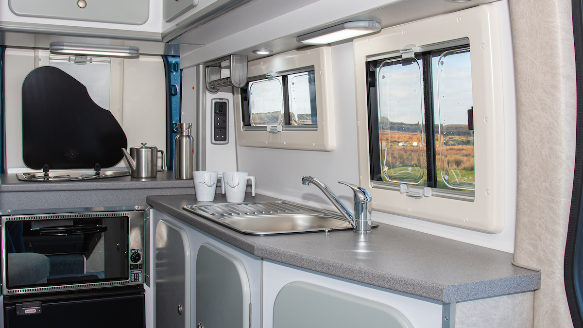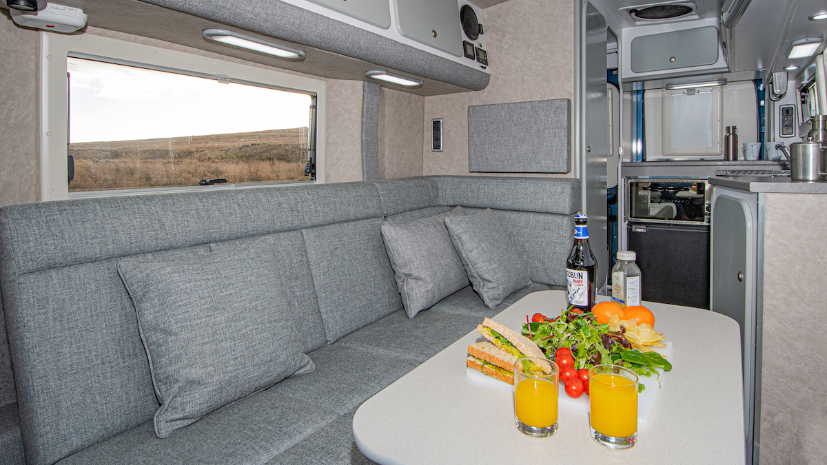 The Morello has one of the best lounges you’ll find in a van conversion. It’s just brilliant being able to draw back the sliding door and have the great outdoors right there as you eat and drink.