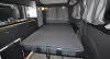 Ignore the fabric curtains you can see in our image to the right – Swift is working on versions with a tighter fit to provide better blackout. The elevating roof benefits from an acrylic window on the offside and flyscreen meshes front and nearside, all with zipped covers.