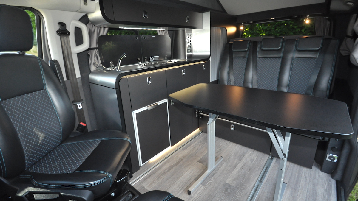 There’s a free-standing table that stows on rear of the seat – not ideal, especially if you’re putting lots of luggage in the back. However, its top is angled at the corners, which makes getting around it easy once it’s set up in the living area. And you could use it outside too. If the interior is too dark for your liking, there’s a cream furniture finish available at no extra cost.