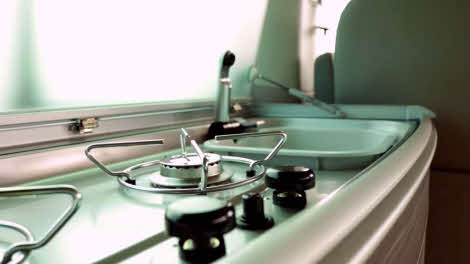 As is often the case in an elevating-roof camper, despite a number of individually-switched units, illumination never seemed quite right. There’s no central lamp, but there are units spread along both sides, and just the one bulb on a stick to serve both the cab seats. A single switch to turn off all lights from your bed would be a plus, too.
