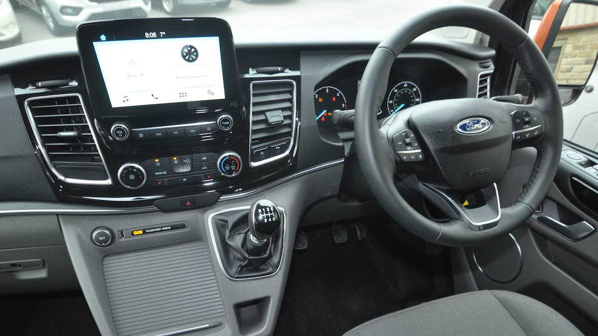 Because it’s the Tourneo, you get metallic paintwork (the ‘Orange Glow’ featured here is one of 10 colours), 17in alloy wheels, colour-coded body kit and trim as standard. There are also features such as sliding doors to both sides with hinged windows and mesh blinds.