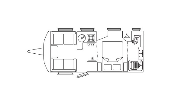 The front chest has the usual slide-out extension, although I can’t for the life of me think why they didn’t make it sit flush with the existing surface when it’s pulled out. Storage has been thoughtfully provided – there is everything from two exterior-access hatches (one to the wide-open spaces beneath the double bed) to a ‘shoe hatch’ just inside the entrance door.