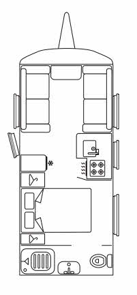 Caravans of this four-berth configuration are almost entirely used as two-berthers, but any overnighting guests will be pleased with their big, pleasantly comfortable double bed. They may be less enamoured by the washroom’s accessibility, given that it’s right at the back of your bedroom.