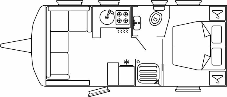 Its central location gives this facility almost as much flexibility as that kitchen tap. The door to the washroom can be used to close off the front of the caravan if you have overnighting guests – or if you want to use the whole area as a dressing room. A sliding door shuts off the bedroom from everything else.