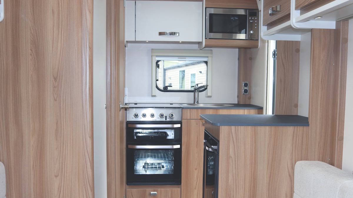 On the whole, the Compact’s interior is a nice place to be, thanks to the co-ordinated décor that includes two attractive, well-fitting carpet sections. The pale-coloured doors on the wardrobe and the big overhead kitchen locker contrast with the wood-look finish elsewhere, which is a cool design touch.