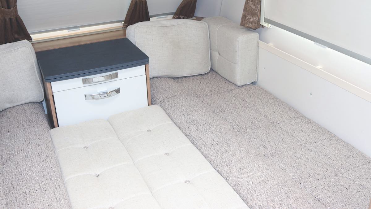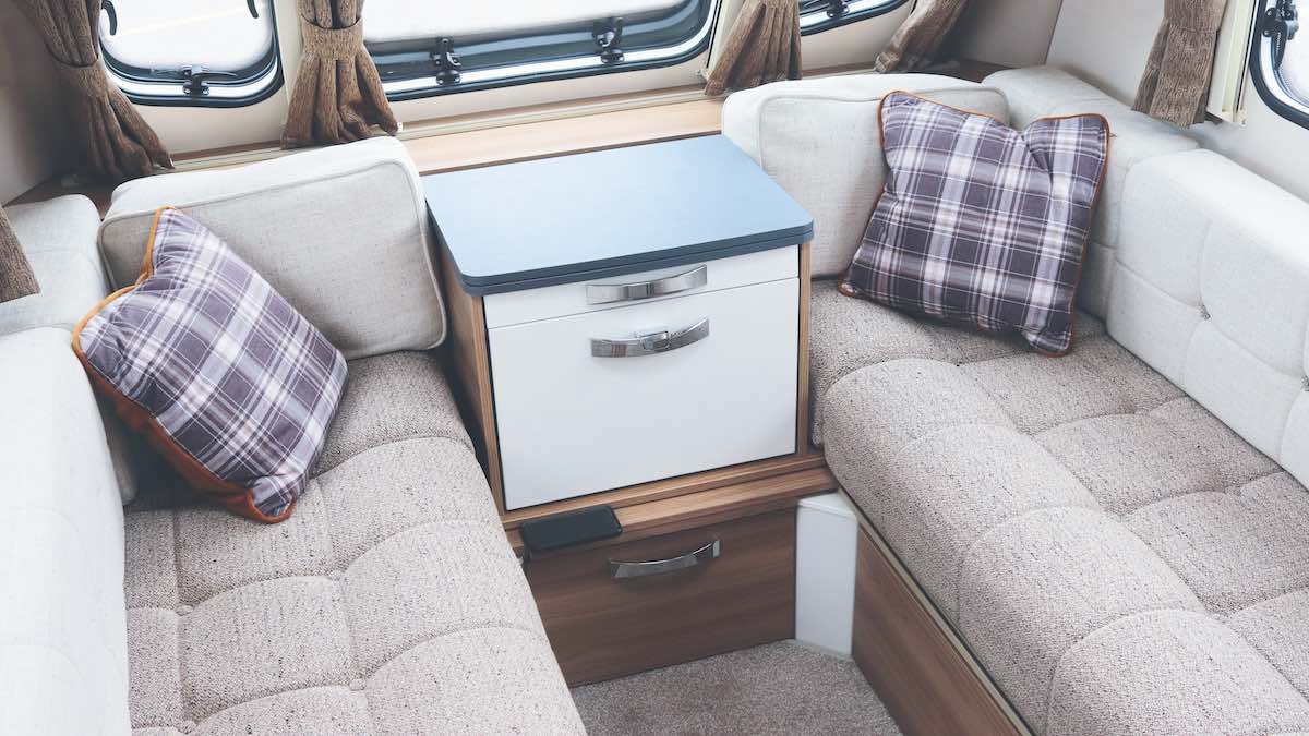 There’s little chance of avoiding feet/leg clashes with whoever’s sitting opposite you in the lounge – which I state merely as a fact, not a criticism. In a caravan this narrow, something’s got to give! Despite this, it’s a very comfy space, although you’ll need to go shopping to bolster the standard ration of two scatter cushions.