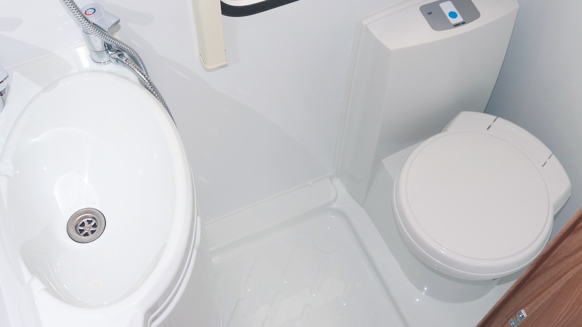 Given that the washroom is compressed into the offside rear corner, it feels surprisingly spacious. Open the pleasingly substantial door and it immediately looks more than the sum of its parts. With the wraparound curtain in play, the shower is a good size and benefits from its own mixer tap. Condensation worries are banished