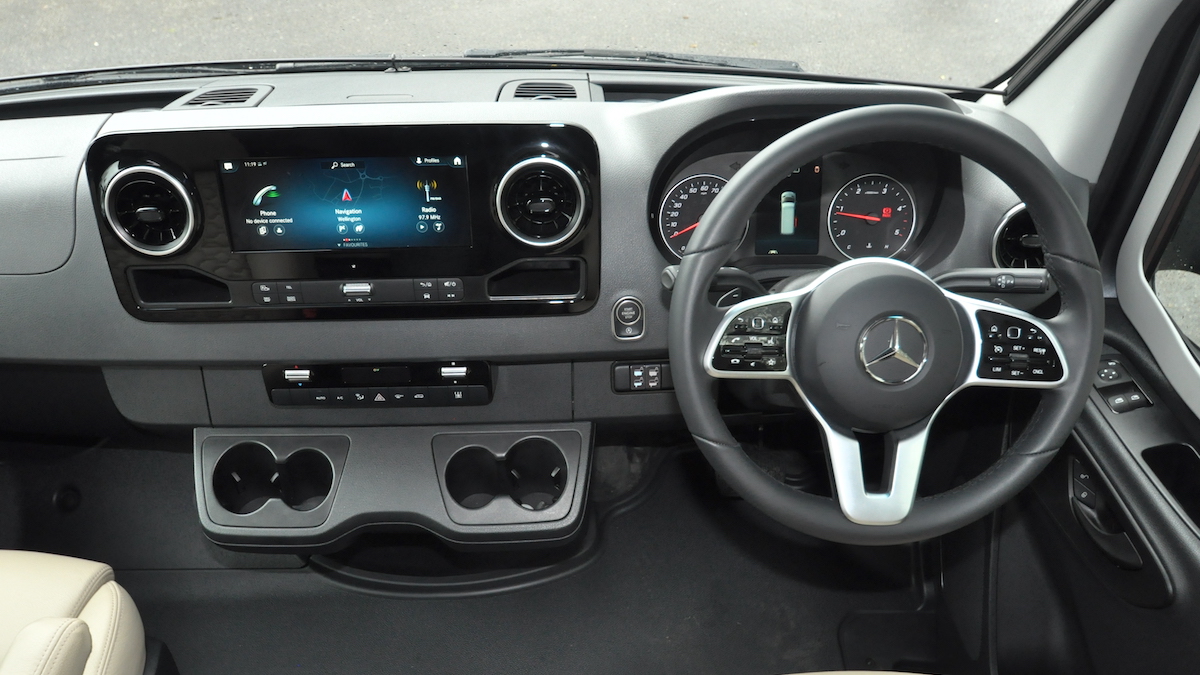 In the cab, the padded steering wheel with a plethora of control buttons and the 10in touchscreen – part of a sophisticated MBUX infotainment system that extends to sat-nav and voice control – draw the attention.