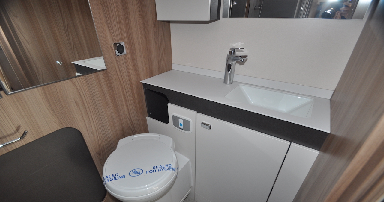 It’s all change in the washrooms for these latest Escapes. Step up into a generously proportioned space, complete with fixed inset handbasin, good-sized wall-mounted mirror, swivel-bowl toilet and separate shower cubicle with Ecocamel showerhead on a riser bar. There’s an integrated storage space for your toiletries.