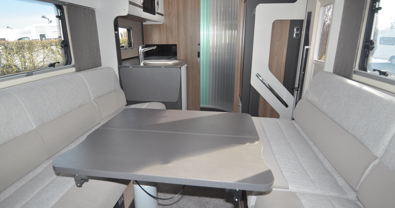 Four people can travel thanks to the fold-up single, forward-facing seats in the base of each settee. You do, of course, lose storage with extra passengers, but it’s a great option to have.