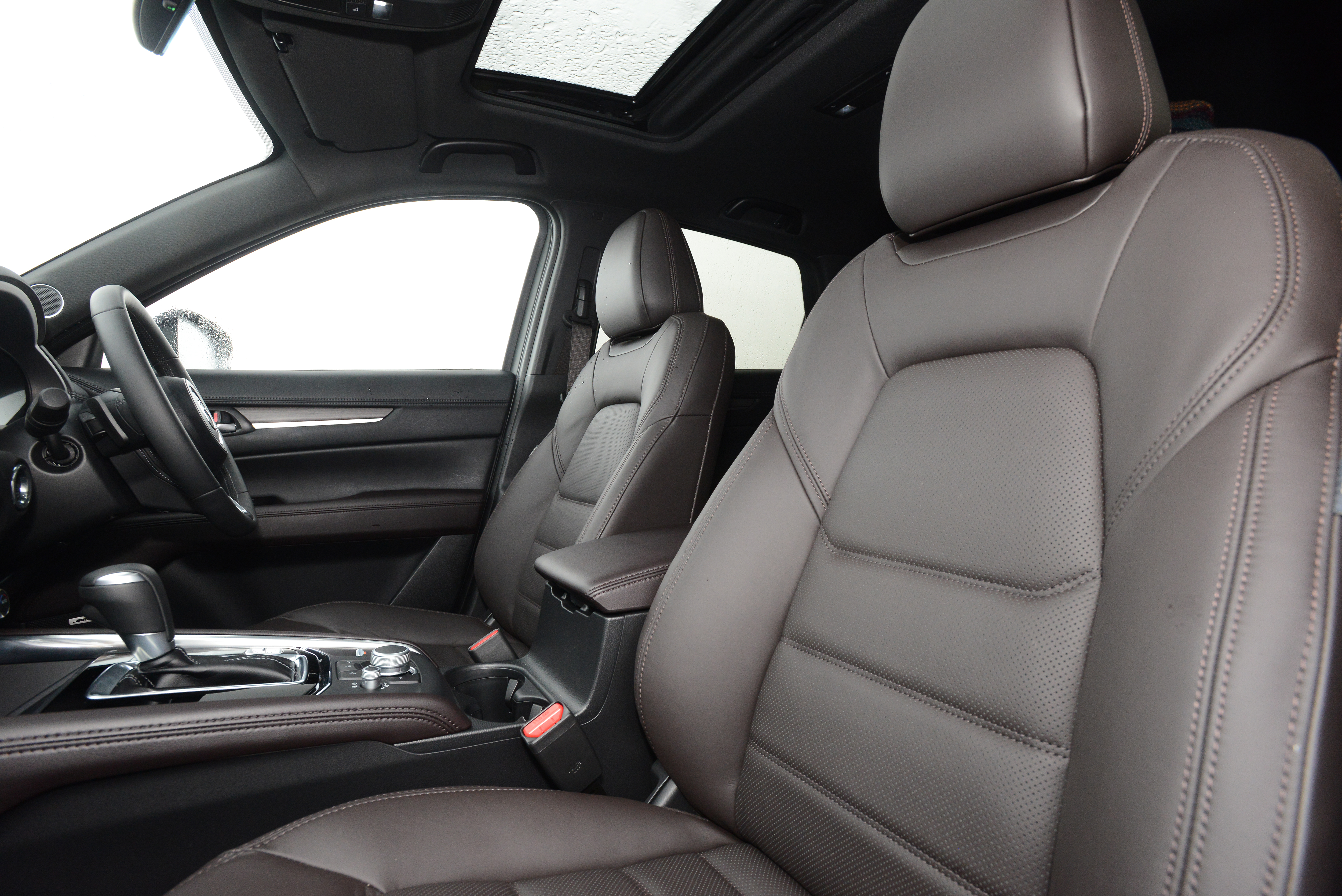 Meanwhile, Sport adds a powered tailgate and parking sensors front and rear, while the new Sport Black model gets black alloys and black leather upholstery with red stitching. At the top of the range is the new GT Sport tested here, with its smart body-coloured exterior trim, 19in alloy wheels, a Bose stereo system, head-up display and Nappa leather seats. This car certainly felt pretty luxurious with those soft brown seats (heated and cooled), but no matter which model you go for, the CX-5 has a quality feel. While the design of the dashboard is a little on the staid side, the controls are well laid-out, the switchgear is tactile and it’s easy to get comfortable thanks to plenty of wheel and seat adjustment.