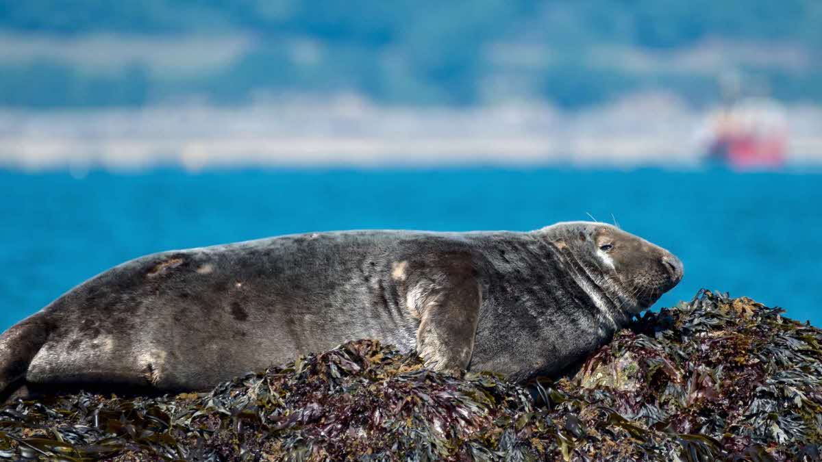 An Atlantic grey seal sunbathing on a rock in Cornwall