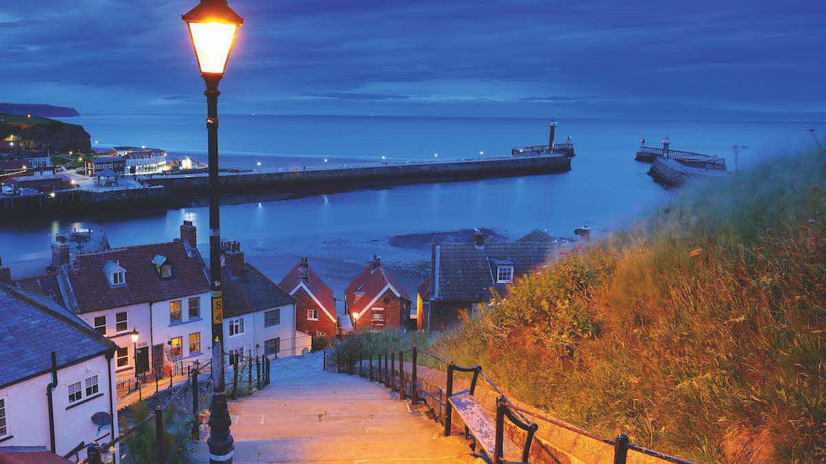 Climb the 199 steps in Whitby for a panoramic view of the coastline and the red-roofed town below.