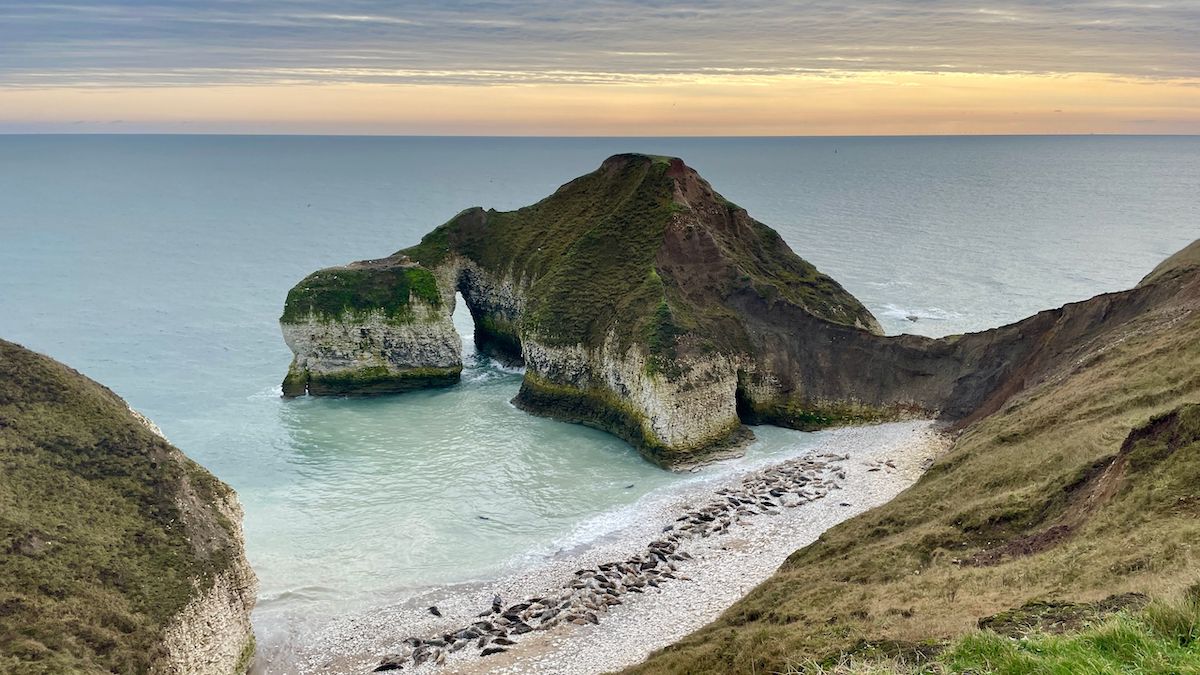 Three miles farther along the coast path, at Bempton Cliffs RSPB reserve, half a million seabirds gather to breed between March and August. A friendly warden encourages me to look out for seals, porpoises, dolphins and even minke whales, but I fail to spot a single fin as I scan the horizon through binoculars.
