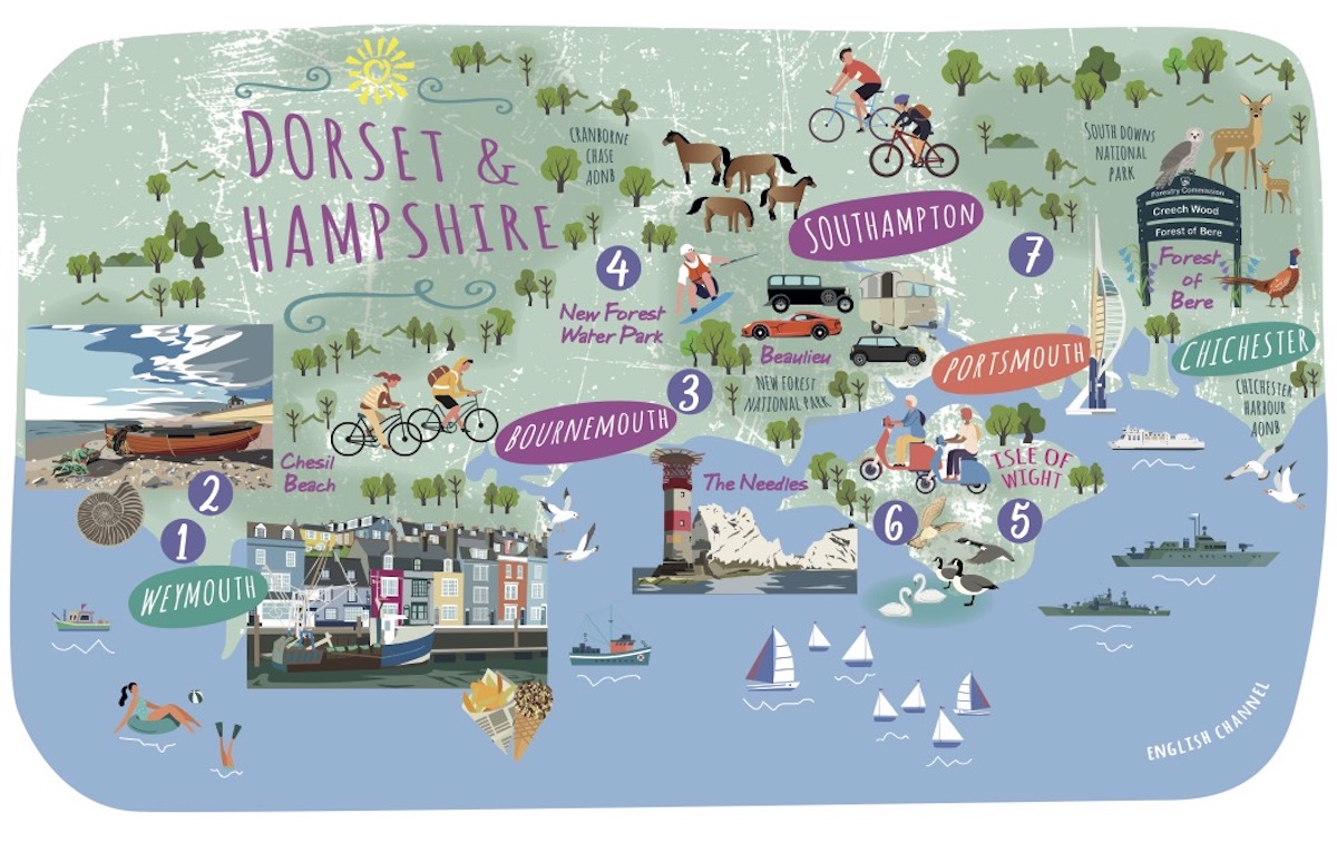 Amazingly, some people choose to bypass the UK’s central south coast, preferring instead to follow the tourist trail to Devon and Cornwall. But just look at the variety of places of note on offer in Dorset and neighbouring Hampshire – such as the Jurassic Coast, the New Forest and South Downs national parks, buzzing resorts like Weymouth and Bournemouth, as well as the historic maritime cities of Southampton and Portsmouth!