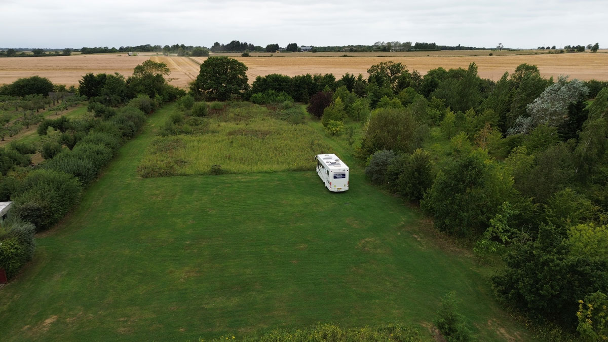 In the winter there is hardstanding for 3 units with electric hook ups.In the summer there are two hardstanding pitches and three grass, so a choice between pasture pitching or hardstanding., In th event of particularly wet weather, grass pitches will not be in use.. Electricity meters will be installed in 2024. The CL is separated from the main road by a 200 yard drive with a locked gate and a belt of trees, offering wind and noise protection.