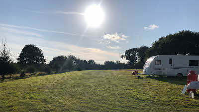 5 well-drained grass pitches on a slightly sloping south-facing hillside with extensive views of the Eastern edge of Bodmin Moor to the upper Tamar Valley and onward to Dartmoor. It is secluded and quiet.