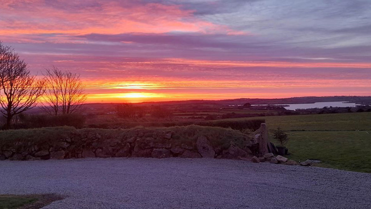 We look down towards Stithians Lake which has a watersports centre (windsurfing, paddle boarding, sailing and more). The Golden Lion pub is just a mile away serving good food and drink.
