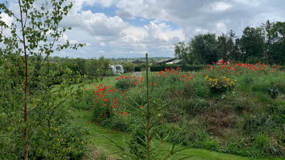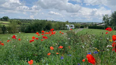 The site is in a large gently sloping field with a recently planted wooded area and a spacious open area for relaxing and enjoying the peace.