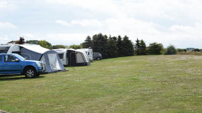 The site itself is located on a lawned field and all pitches have electric hook-ups and space for awnings. It is an adults only site, mainly because there is an unfenced wide drainage waterway alongside the field. There is access next to the site to one of several public footpaths in the area. Despite the name, there are no hills! The village field is approximately 100 yards away where dogs can be exercised.