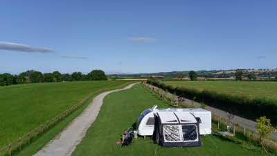 Our CL site is based on our working farm. The paddock for the CL is half a mile from the main road with a hard standing road all the way. The pitches are grass but on a well drained field. There is electric and water access points at the pitches with a Elsan and grey water disposal point on the site.