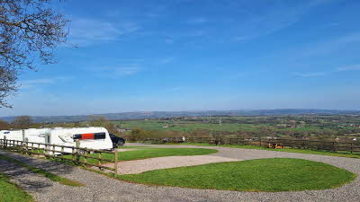 The site overlooks the Peak District and Alton Towers some 4 miles away. It has stunning views and is well away from the road.