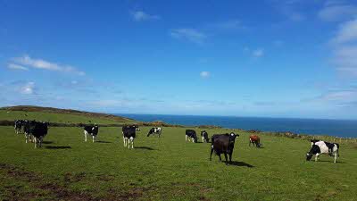 Welcome to Fferm Tresinwen, 200 plus acres of organic dairy farm within the Pembrokeshire National Park area boasting totally uninterrupted and spectacular views of our coastline. Watch the Irish ferry lazily sail by (our land extends to Strumble Head lighthouse). An ideal and tranquil base to explore Pembrokeshire, with incredible sunsets and unhindered views of the night sky. We are situated a few miles from local shops and restaurants in Goodwick and Fishguard. Day trips to Ireland through Stena can be booked online.