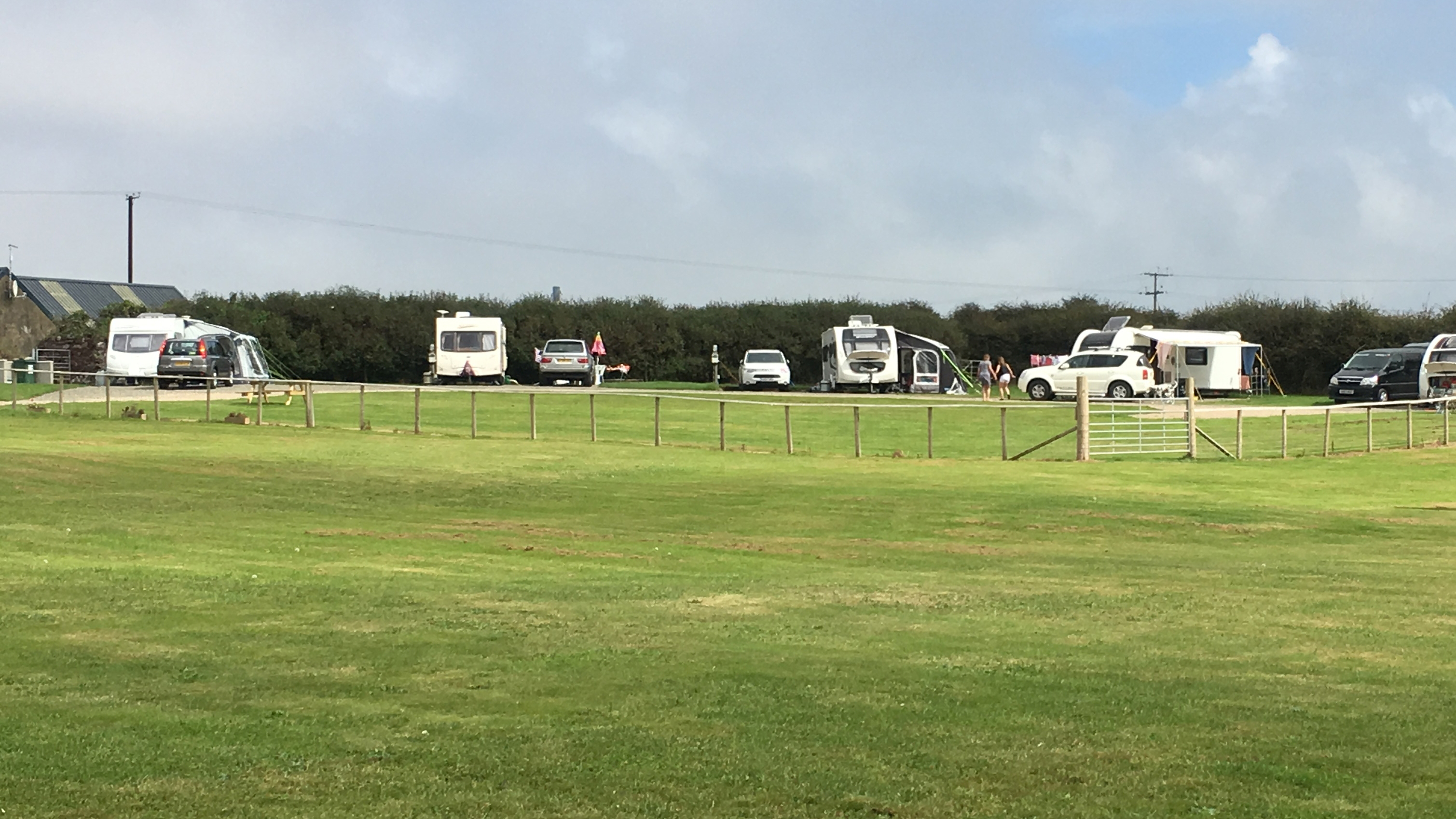The designated CL grounds consist of five pitches hardstanding pitches with a 16A electric hook- up, courtesy light, fresh water tap, greywater drain, satellite and terrestrial digital TV points and Free Superfast Wifi. This is located at the corner of a large field.