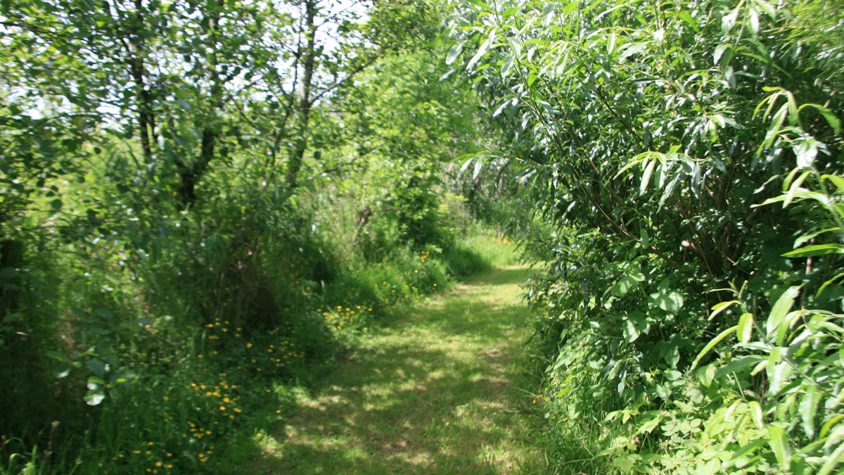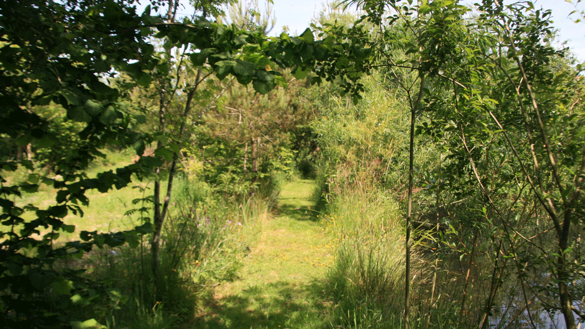 The gently sloping site, with level pitches, enjoys fabulous sunrises, sunsets and rainbows. On a migratory route for birds heading north in spring, south in autumn, Artic and northern European birds overwinter here. Watch starling murmurations and Red Kite hunting above. Lapwings, starlings and snipe feed in the forest garden and sedge warblers trill from the reeds around the wild pond. Stroll through the wooded paths and rest beside the pond. Remember, this is a wild landscape where the ground is uneven and, often, boggy.