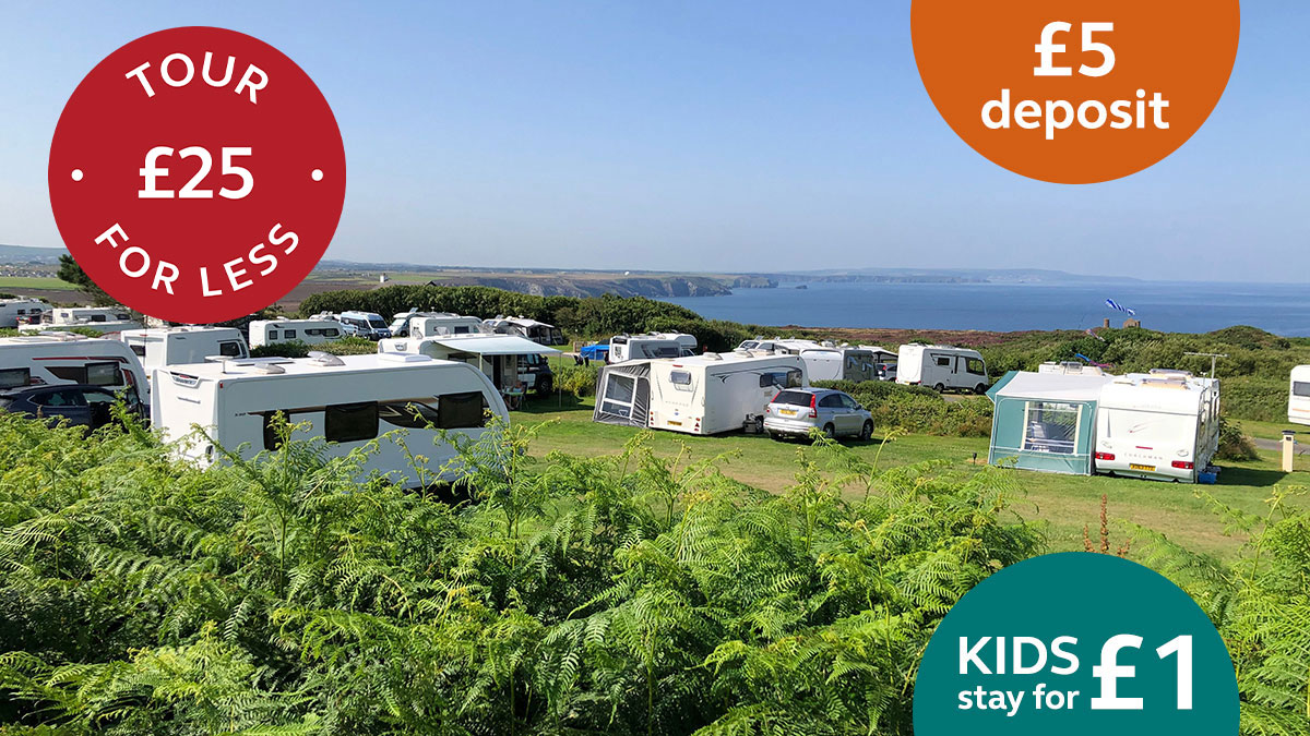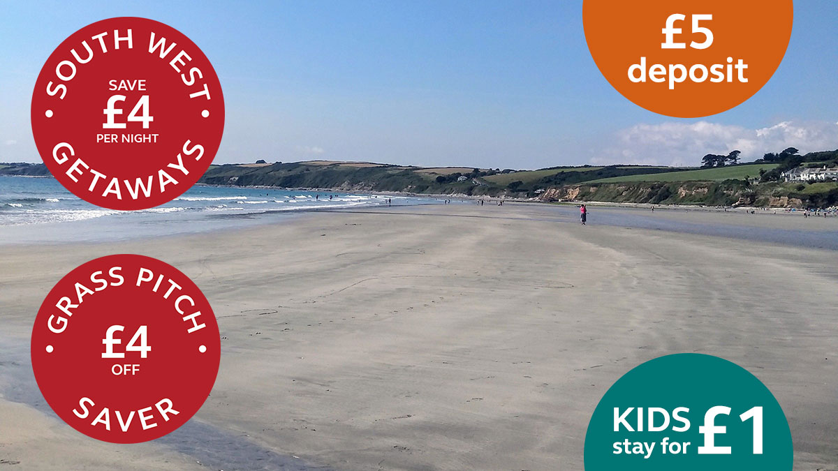 OFFERS*: £4 OFF South West Getaways | £4 OFF Grass Pitch Saver | Kids for £1 (aged 5-17) | Under 5s stay free | £5 refundable deposit