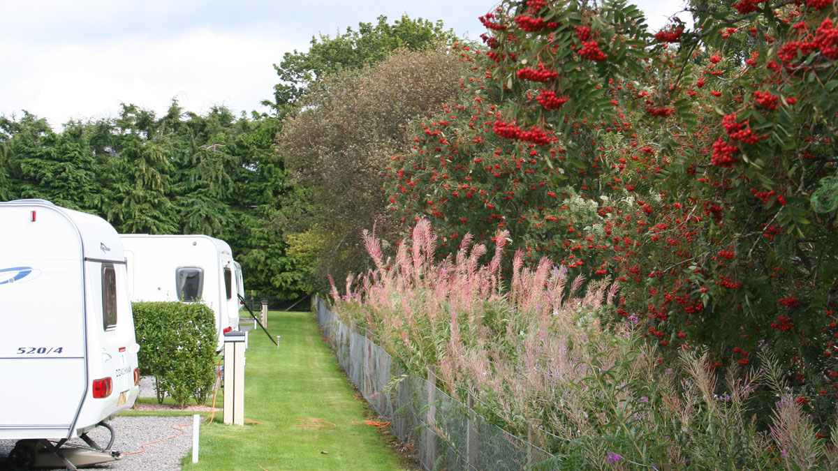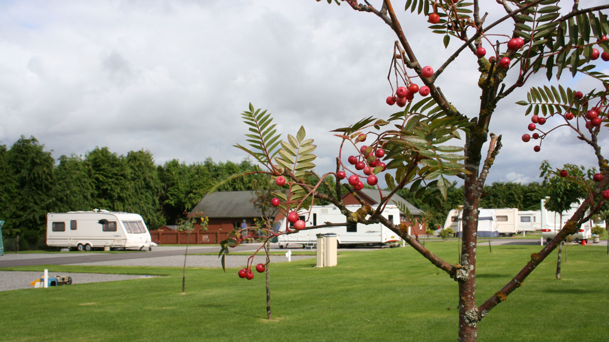 Turn left off the A90 (Laurencekirk - Aberdeen) on the outskirts of Stonehaven (ignore the first signpost to A92, Stonehaven, Banchory) onto the A957 (signposted Spurryhillock, Stonehaven, Banchory). Continue past the industrial estate. At the T-junction turn left and almost immediately right (about 180 metres) into Farrochie Road. At the roundabout continue left onto the A957 (signposted Banchory). In about 12 miles at the T-junction turn left into the road signposted Braemar. The site is on the left on approaching outskirts of Banchory (200yds past 30mph sign and signpost Banchory). From the west: follow the A93 to Banchory. In the town centre go straight on at the traffic lights. The site is on the right in 1.5 miles. From the east: follow the A93 to the outskirts of Banchory (Tesco on the right). The site is on the left, 22 yards past the 30MPH sign. Please only use these recommended directions for the final approach and not SatNav, due to alternative routes being unsuitable for towing. Access via B974 is not recommended.