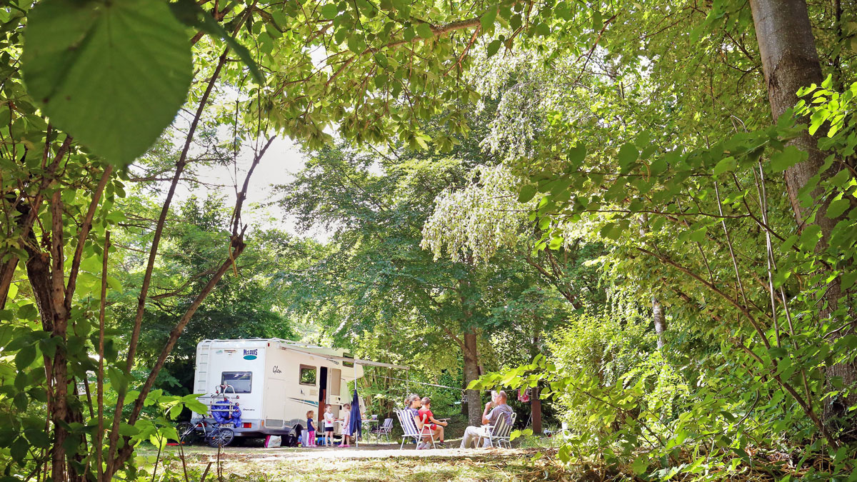 The pitches are arranged in groups, which are separated by shrubs and trees that provide ample shade. Dogs are welcome and will love long walks in the surrounding countryside.